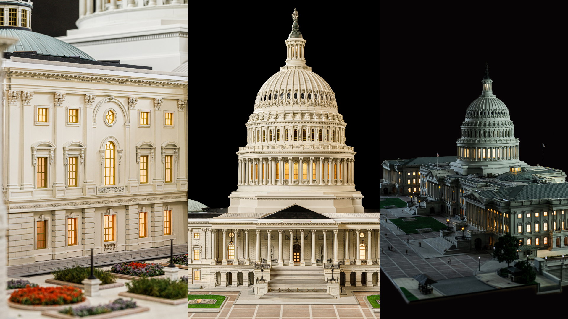 The legendary US Capitol is striking even in photographs — a symbol of American democracy, embodied in monumental neoclassicism with ancient columns, a vast dome, and impeccable detail. Now imagine this grand structure reduced 87 times in scale and placed within a 118x118 inches space. Minibricks Studio was the first in the world to make this vision a reality. We created a miniature masterpiece that impresses with its realism and intricacy.